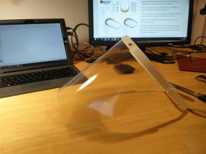 Nuestro centro, además de seguir acompañando a alumnos y familias, se ha querido sumar a la comunidad maker y estamos fabricando viseras de protección para personal sanitario gracias a nuestras impresoras 3D. Se trata de unas viseras cuyo soporte está fabricado en plástico y al cual se unen unos acetatos transparentes. Estas viseras han sido homologadas por la Comunidad de Madrid y permiten al personal sanitario tener una protección mayor en sus prácticas con pacientes infectados por coronavirus.