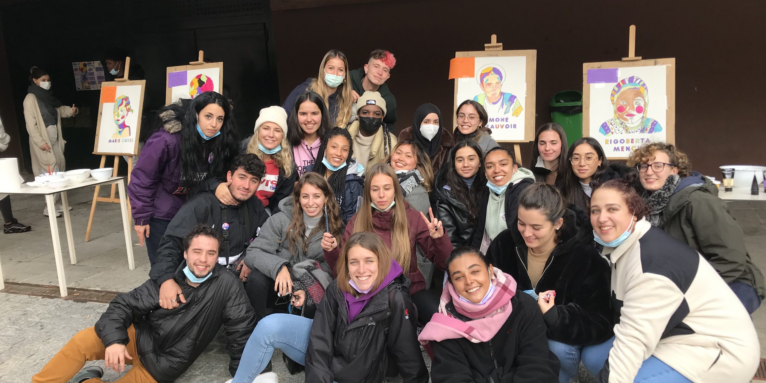 El grupo de alumnas y alumnos de 2 de Integración Social, ha preparado unos talleres de prevención para el alumnado de 1 de Grado Medio y FP básica, y ha montado un punto violeta en el recreo además de organizar una actividad colaborativa para pintar a cuatro mujeres que han luchado o luchan por la igualdad de género. Ha sido una jornada estupenda para visibilizar este problema social.