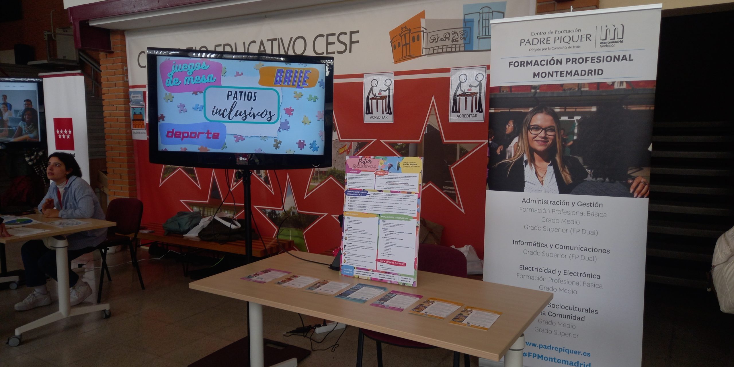 El Centro Padre Piquer participó en las jornadas de innovación y formación de Formación Profesional, promovidas por las Direcciones de Área Territoriales de la Comunidad de Madrid, exponiendo su proyecto de «Patios Inclusivos», donde el profesorado y alumnado del ciclo formativo de Grado Superior de Integración Social, desarrollan y ponen en práctica anualmente un proyecto intermodular, que pretende dinamizar el tiempo y el espacio del recreo para todos los alumnos y alumnas del centro.