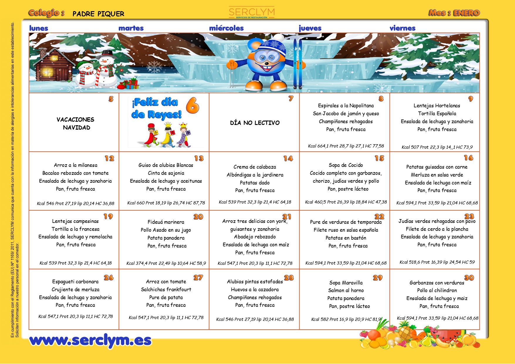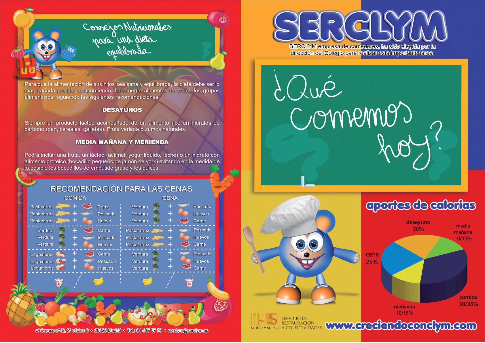 El comedor es un servicio que se ofrece de lunes a viernes para cualquier alumno que lo solicite. SERCLYM es la empresa de restauración que, con una experiencia de más de 30 años, da de comer a unos 100 chicos y chicas cada día ofreciéndoles una dieta equilibrada y variada y trabajando con ellos hábitos de vida saludables. Accede al menú de enero