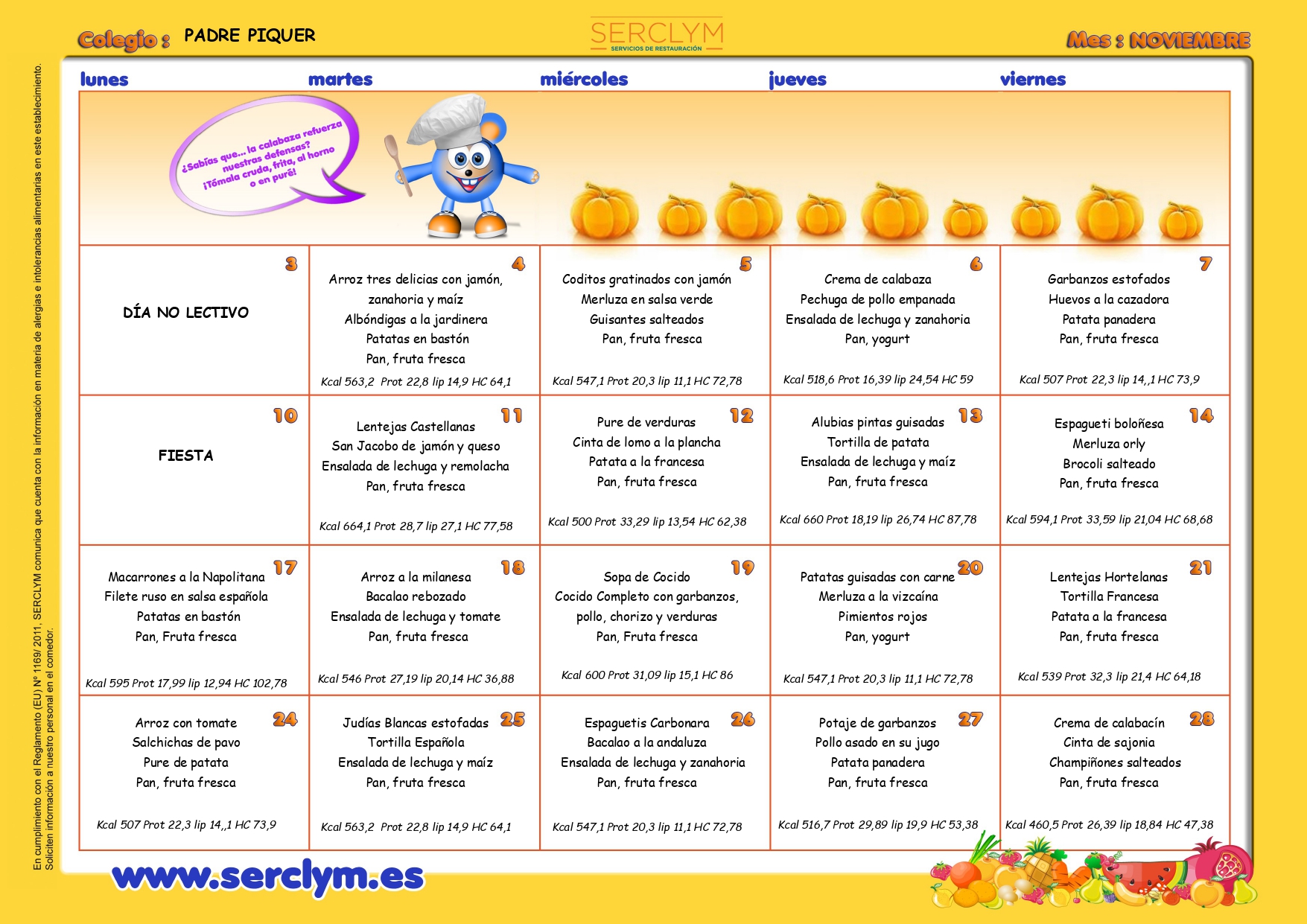 El comedor es un servicio que se ofrece de lunes a viernes para cualquier alumno que lo solicite. SERCLYM es la empresa de restauración que, con una experiencia de más de 30 años, da de comer a unos 100 chicos y chicas cada día ofreciéndoles una dieta equilibrada y variada y trabajando con ellos hábitos de vida saludables. Accede al menú de noviembre