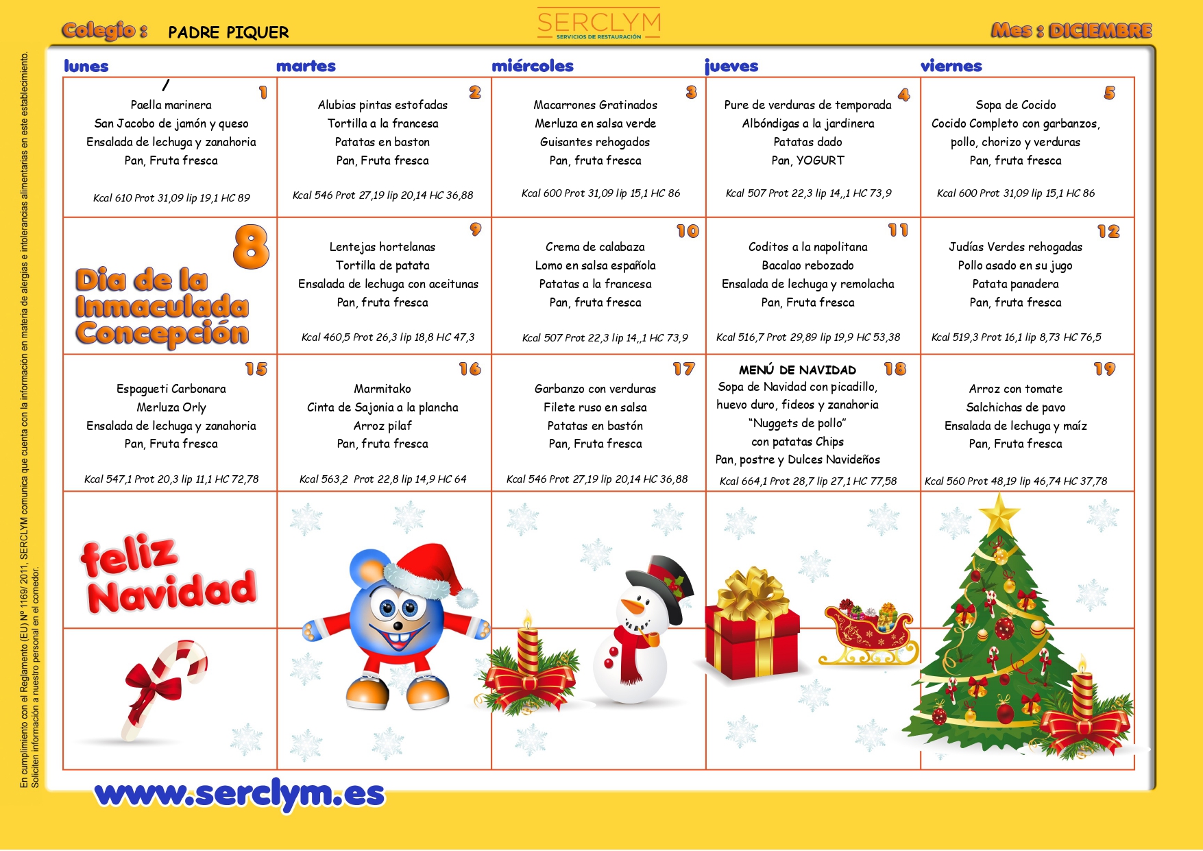 El comedor es un servicio que se ofrece de lunes a viernes para cualquier alumno que lo solicite. SERCLYM es la empresa de restauración que, con una experiencia de más de 30 años, da de comer a unos 100 chicos y chicas cada día ofreciéndoles una dieta equilibrada y variada y trabajando con ellos hábitos de vida saludables. Accede al menú de diciembre
