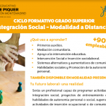 En la modalidad virtual los/as estudiantes se pueden matricular en cada curso académico, como máximo, de un número de módulos profesionales cuya duración en conjunto no exceda del 60% de las horas totales de duración de las enseñanzas, sin tener en cuenta para este cómputo los módulos profesionales en los que se efectúe traslado de calificación o se resuelva de forma estimatoria su convalidación. Se recomienda seguir el itinerario de módulos de primer y segundo curso de Integración Social en modalidad presencial.