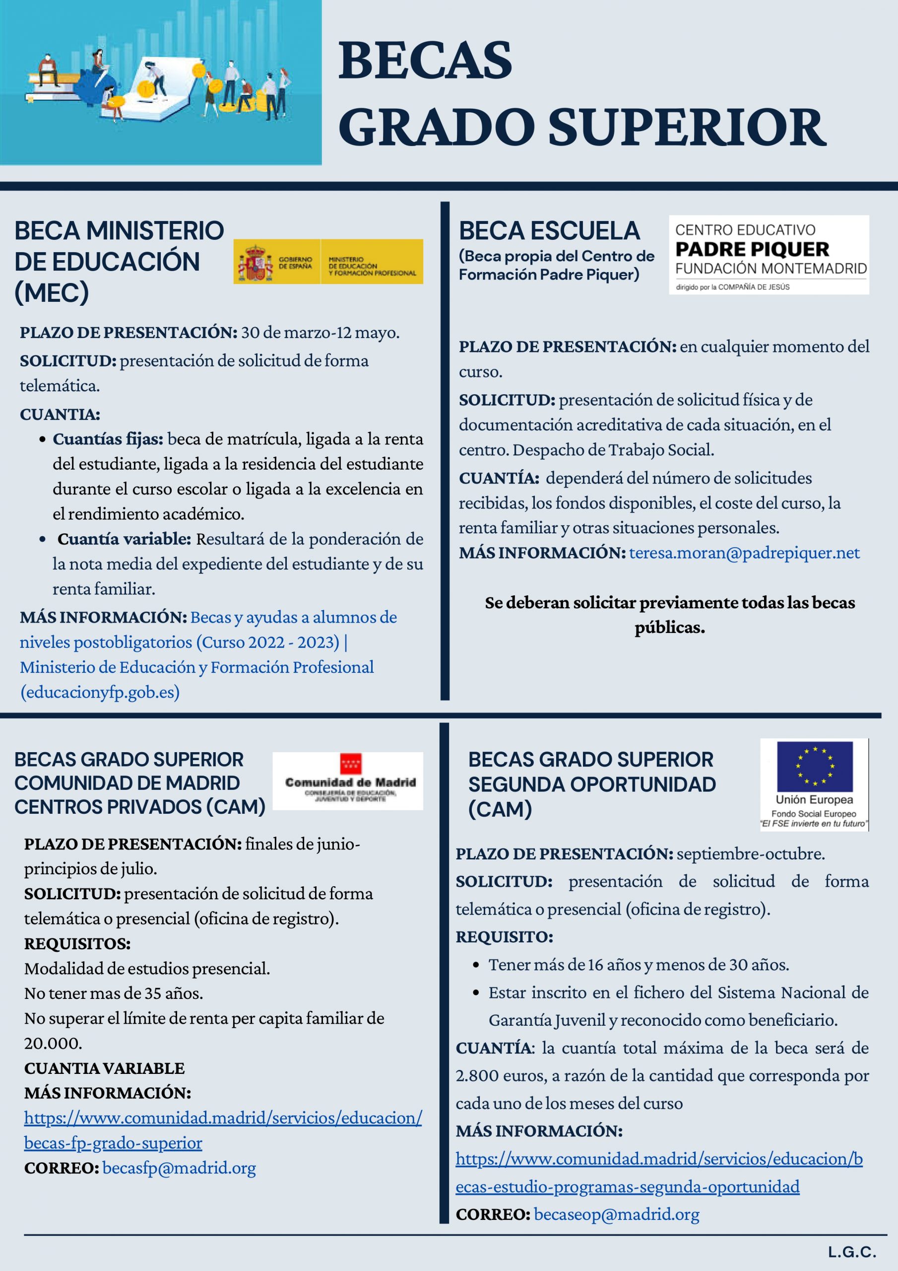 En esta página tienes toda la información relacionada con el proceso de matriculación en los cursos de 1º de Grado Superior: Plazos, documentación, tasas y becas, así como un formulario para contactar con nosotros si tienes dudas.