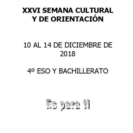 Estamos celebrando estos días las XXV Semana Cultural y de Orientación. Es una semana dedicada a conferencias, cine, experimentos, recitales, miniferia, salidas a universidades. Pequeñas pinceladas que pretenden abrirnos la mirada a otros mundos. Aquí puedes consultar el programa que se desarrolla.