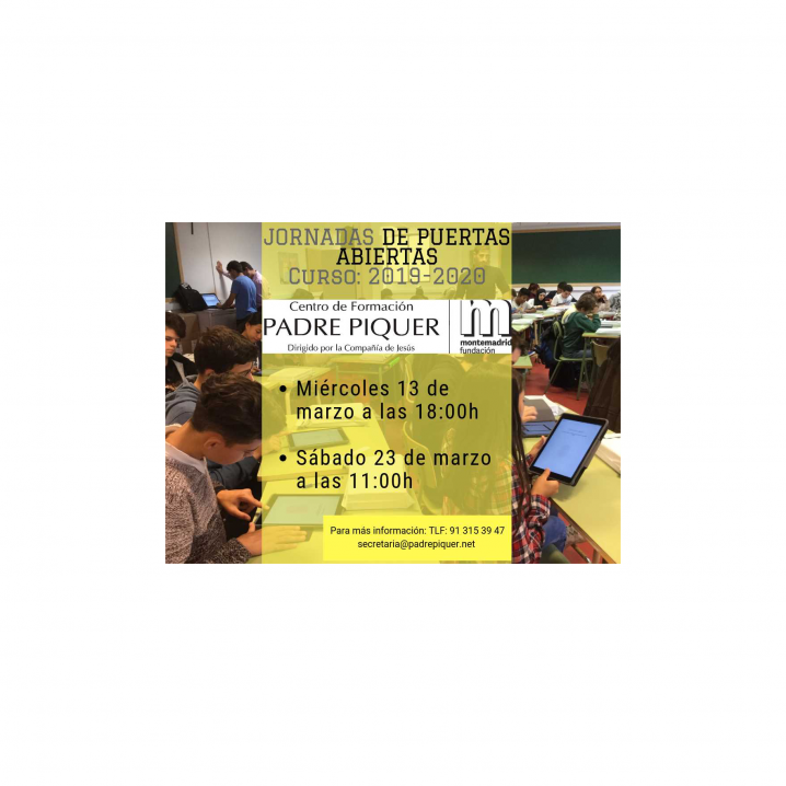 Primeras jornadas de puertas abiertas en PADRE PIQUER. Nuestro propio alumnado y profesorado compartiendo en qué consiste nuestro proyecto educativo en las etapas de ESO, BTO y FP. ¡No te pierdas las siguientes! Inscríbete en este formulario