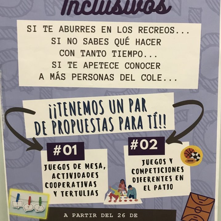 ¡¡Comenzamos patios inclusivos!!! Todos los viernes en la hora del recreo el alumnado de FP y bachillerato, organiza distintas actividades ( juegos cooperativos, baile, juegos de mesa) con el objetivo de generar un espacio de convivencia y buen trato entre el alumnado. ¿Te apuntas?