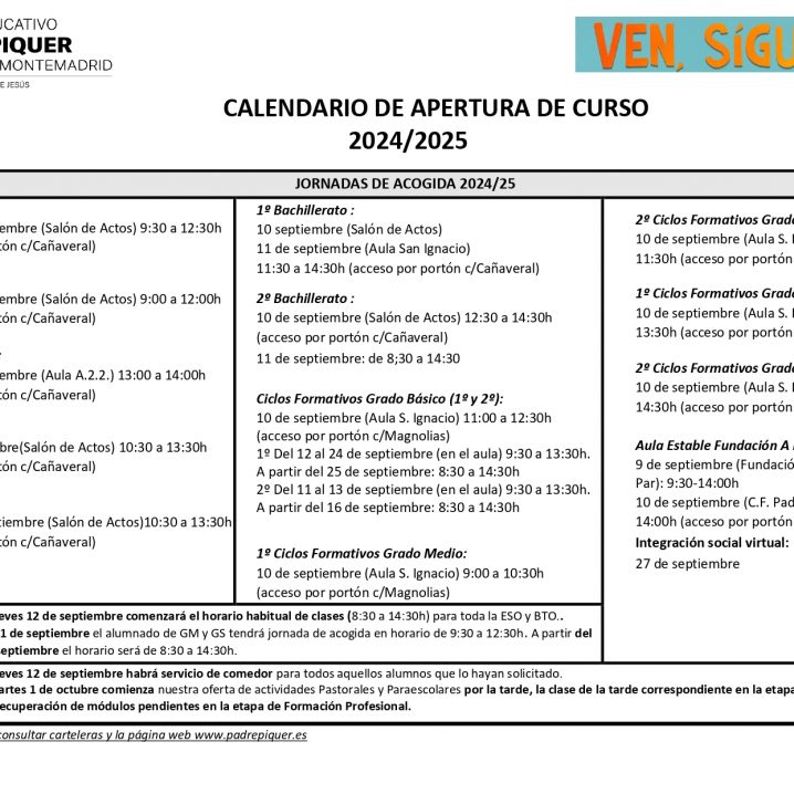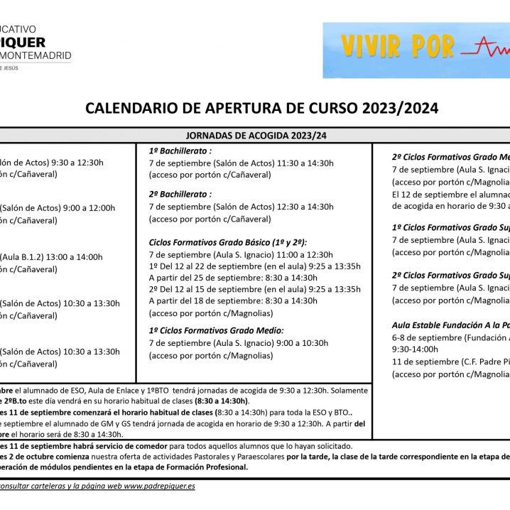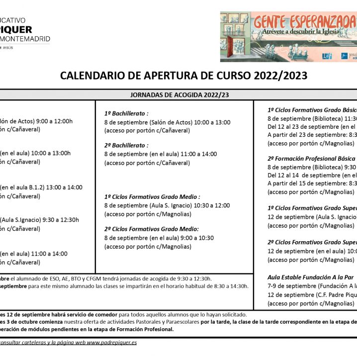 Desde el Departamento de Formación Cristiana, damos la bienvenida a toda la Comunidad Educativa: padres, alumnos, profesores, y personal no docente. Iniciamos juntos, y acompañados, como siempre, por Dios, una nueva aventura de crecimiento y maduración personal y comunitaria. ANTE TODO, GRACIAS a quienes depositáis la confianza en Piquer; GRACIAS a los que cada día…