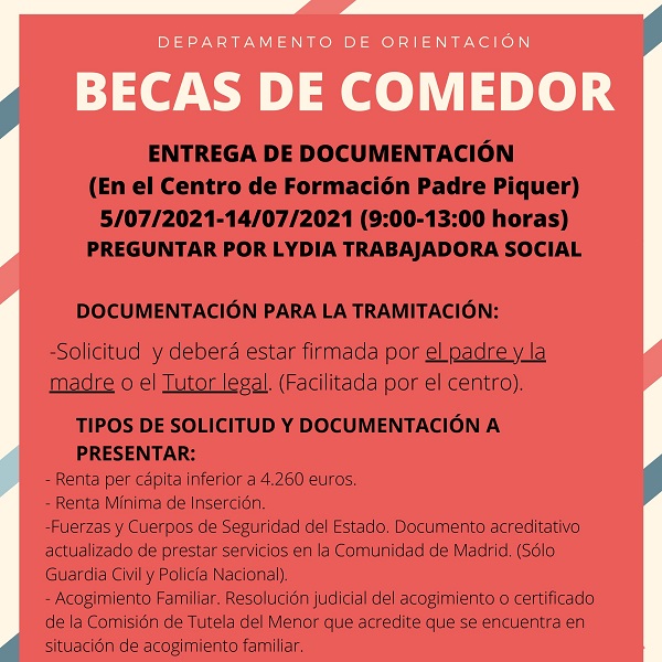 Ya se pueden solicitar las becas del Ministerio de Educación para los estudios de Formación Profesional y Bachillerato . El plazo para solicitarlas es del día 3 de agosto hasta el 30 de septiembre.